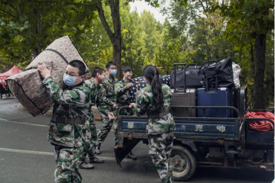 新生在志愿者学长学姐的引导下,完成资格审查、注册报到手续之后直接到宿舍区领取行李,即可办理宿舍入住,一站式服务为新生解决宿舍远行李多的难题。