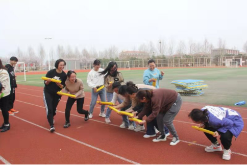 3月5日下午2:40,全体女教工到达运动场参加活动。此次活动,得到了学院领导的大力支持,活动由教务科研处处长、学院女工委员孔艳丽主持,学院院长、校工会委员陈传举教授亲临现场致辞。活动内容由公共教研室黄韬老师策划,活动组织生动有趣,共有“不倒森林”“趣味传球”“鼓上排球”等项目。活动以比赛形式进行,共分成4个队伍,分别为“美少女队”“冠军队”“乘风破浪队”和“牛气冲天队”。