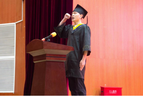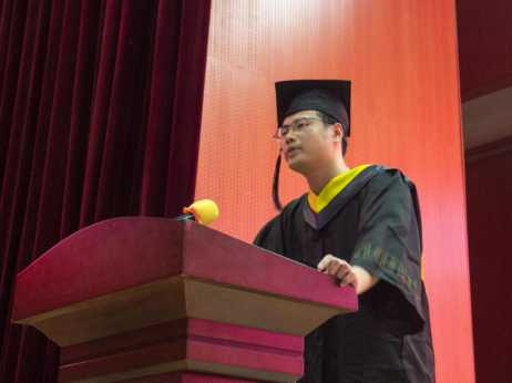 在校生代表、学生会主席胡文剑代表全体在校生向即将毕业的学长学姐们表达了真挚的祝贺,衷心地祝愿他们事业有成,前程辉煌。