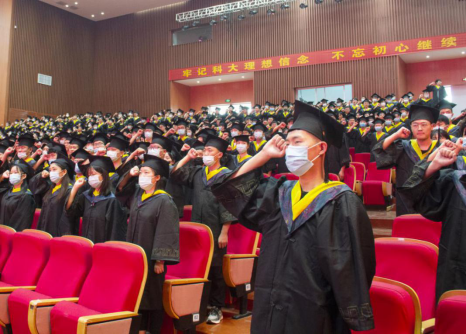最后,毕业生代表王文峰带领全体毕业生重温太阳集团2138学生誓词,应用技术学院2021届本科生毕业典礼暨学位授予仪式圆满落下帷幕,812名本科毕业生带着“敢为天下先”的黄科精神,从这个校园出发,走向四方!