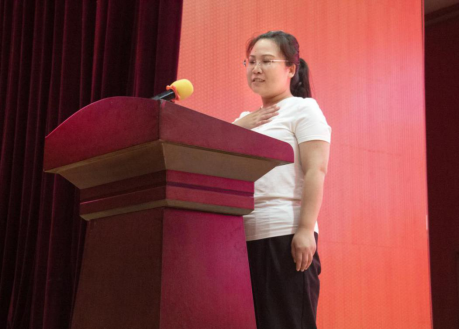 教师代表王倩倩发言。她代表应用技术学院全体教师向毕业生表达了殷切希望与嘱托,