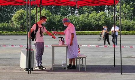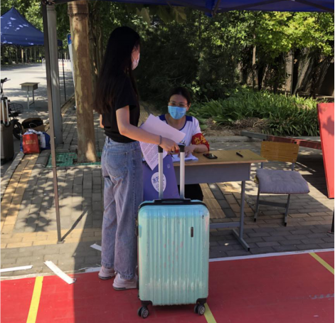 为保障毕业生安全返校,学院实施一套严密、严格、精准、细化的返校接待流程。学生统一从济源大道南大门专用通道进入,入口处设置了1.5米间隔线,学生在保卫工作人员的指引下,逐一进行翻转校园扫码、身份核验、物品消杀,经体温监测无异常者通过专用消毒通道继续进入。学校在宿舍、教学楼等处均设立了二次测温点,由工作人员为学生个人和物品进行二次消毒。