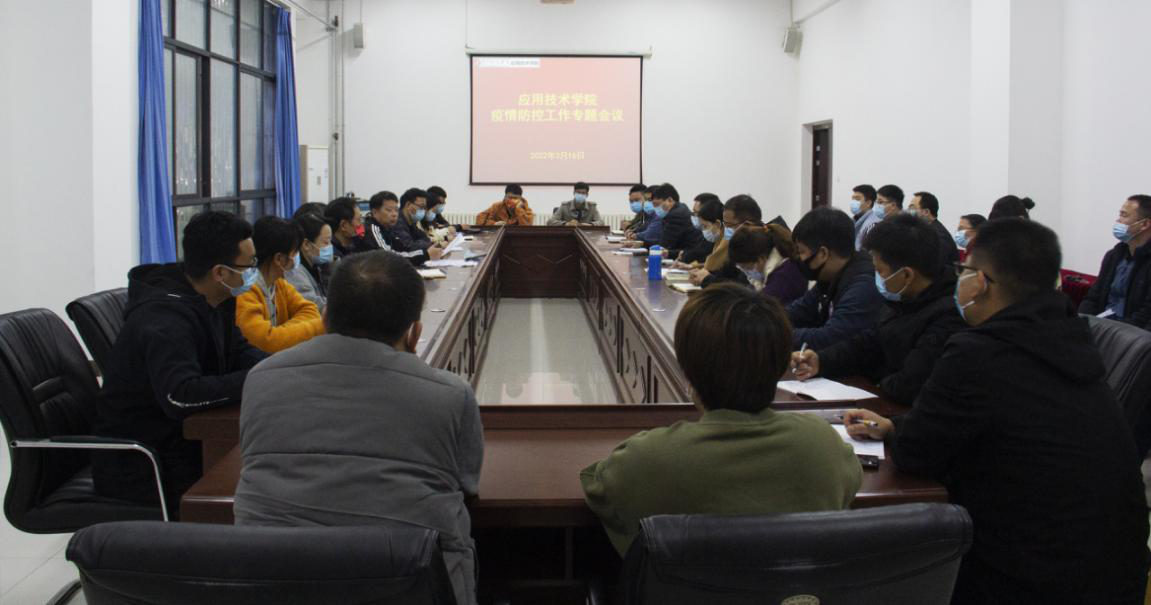 3月16日,应用技术学院在行政楼一楼会议室召开疫情防控工作专题会议,落实疫情防控要求,确保校园安全稳定。会议由学院分党委书记张丕万主持,院长徐斌,副院长杨宗霄,学院各部门负责人、各防控网格长参加会议。