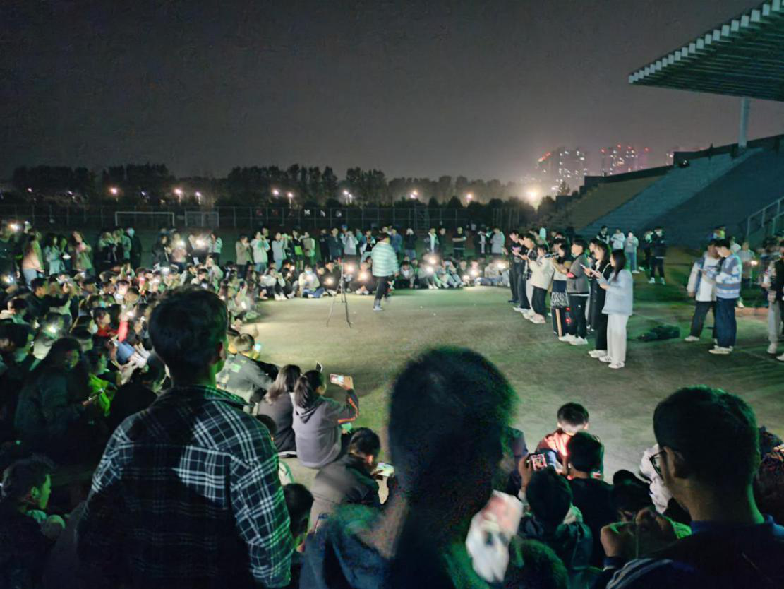 学生会各部门在操场主席台前集合完毕,由学生会干部组织各个部门按叠加圈的形式围坐在一起。伴随着主持人的进场,演唱会正式开始。郭鸽和车振浩的歌曲《大城小爱》把同学们带到一个温馨的氛围,随后杨贺蒙和李昊天的一首《kill the game》燃爆全场,然后王靖婷的《星河万里》以及之后的演唱再次让同学们陷入绵绵思绪、流连忘返。在节目表演期间,同学们挥舞着手机的闪光灯,为歌唱者们打call。此次活动以精彩的视听盛宴落下帷幕。