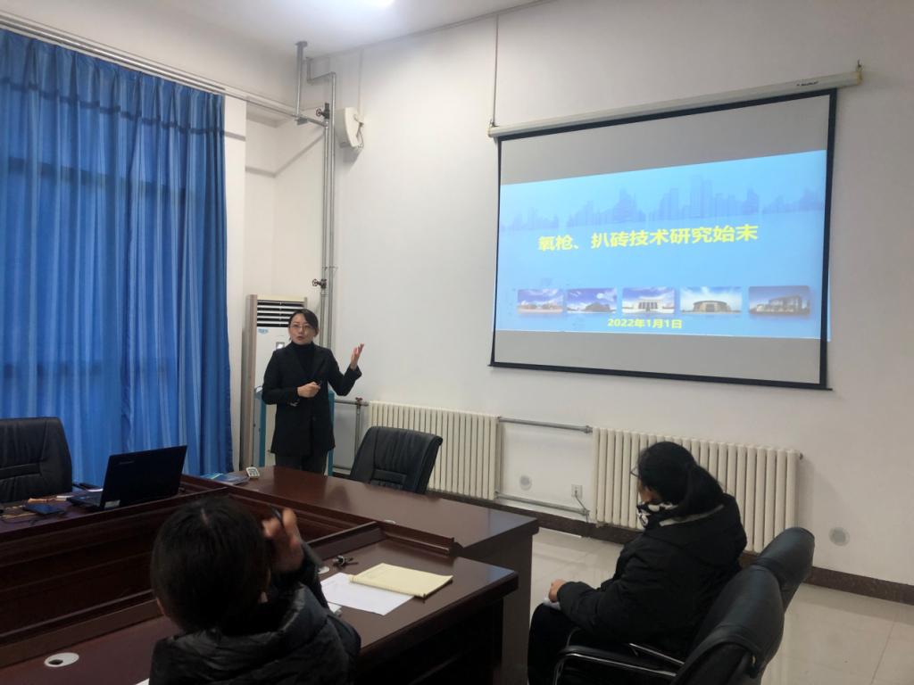 研讨会首先由学院教务科研处孔艳丽处长介绍专利研究背景,孔处长通过图片展示,详细介绍了氧枪、扒砖机技术专利研究始末。接着学院学术委员会主任陈传举教授介绍氧枪发明专利的起因、过程及科学研究的重要意义。机械教研室张飞飞老师结合图片为大家讲解扒砖过程以及企业面临的扒砖难题;车辆教研室王瑞良老师讲述了在专利研究过程中做的相关工作;材料教研室李高欣教授详细介绍了扒砖机专利的内容,并对之前二级扒砖专利项目进一步改进过程进行了说明,并在此基础上产生第二个发明专利。会议期间杨宗霄副院长对相关专利技术创新点以及研究过程出现的问题进行了必要补充和说明。