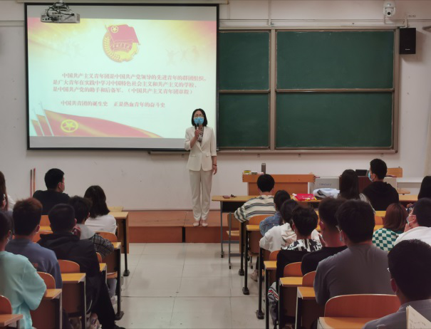 为了让入团积极分子学习掌握更多的团知识,提升责任感与使命感,进一步壮大我校共青团队伍,切实加强团组织自身建设。应用技术学院团委于2022年4月27日中午组织开展“共青团的光辉历程”主题团课,50名入团积极分子现场聆听,本次团课由应用技术学院团委书记牛晓楠老师主讲。