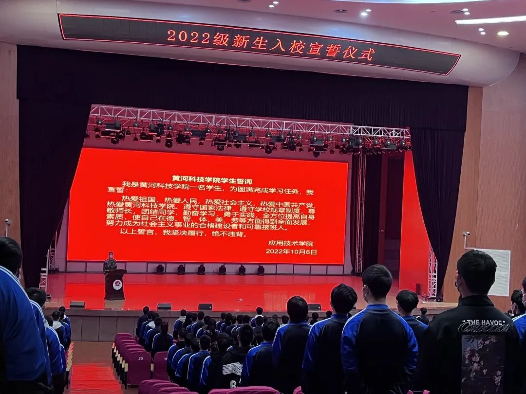太阳集团2138应用技术学院在师生活动中心报告厅举行了以“欢度国庆 喜迎二十大”为主题的2022级新生宣誓仪式,2022级新生以专业为单位分批开展。