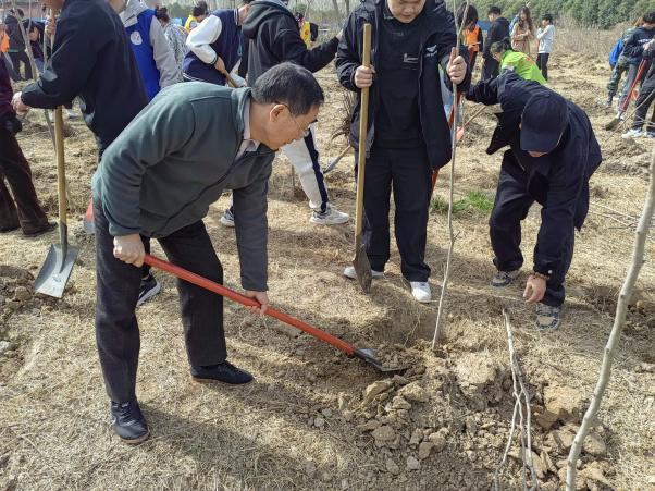 为深入学习贯彻党的二十大精神,持续深入开展全民义务植树活动,倡导健康、文明、绿色、环保生活理念,营造全校师生植绿、爱绿、护绿的校园氛围,增强师生爱绿护绿意识,促进文明美丽校园建设工作,2023年3月15日上午,应用技术学院在南北教学楼西侧,开展以“弘扬生态文明 共建绿色校园”为主题的植树活动,学院副院长杨宗霄,团委书记姚挺及学院分党委党员代表、团学组织代表、学生代表参与本次活动。